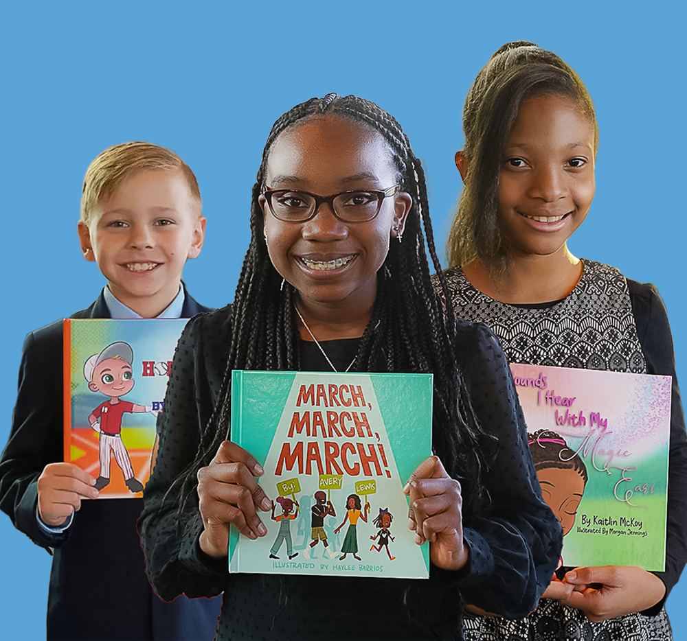 In this digital age, we want to give kids physical items they can hold and keep. Your child gets a unique felt folder packed with a full-color activity book, a rough draft book, a special pencil, an "I'm an Author" wristband and a hardcover book for their final draft. Rules and Eligibility