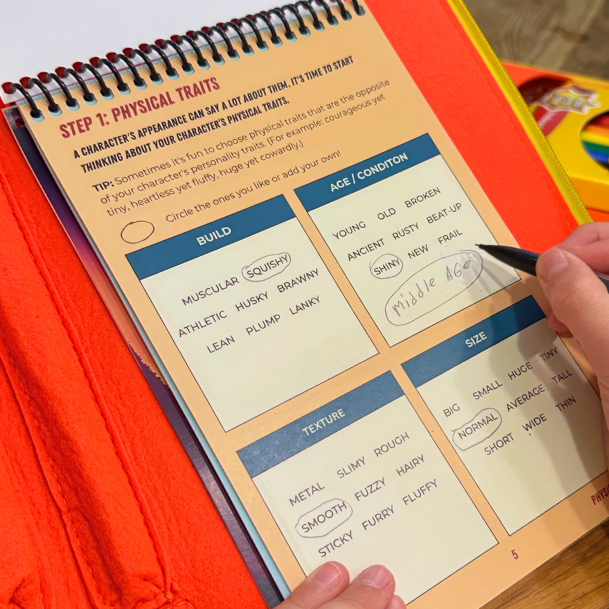 The Character Creator Kit is an exciting experience that takes kids through the process of designing their very own story character, from concept to creation!