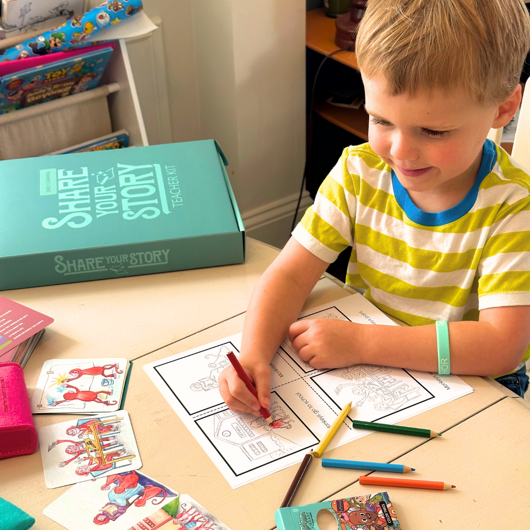 The set includes 7 fiction and non-fiction stories that can be arranged in numerous ways, allowing children to get creative and learn the basics of storytelling, including characters, setting, and events.